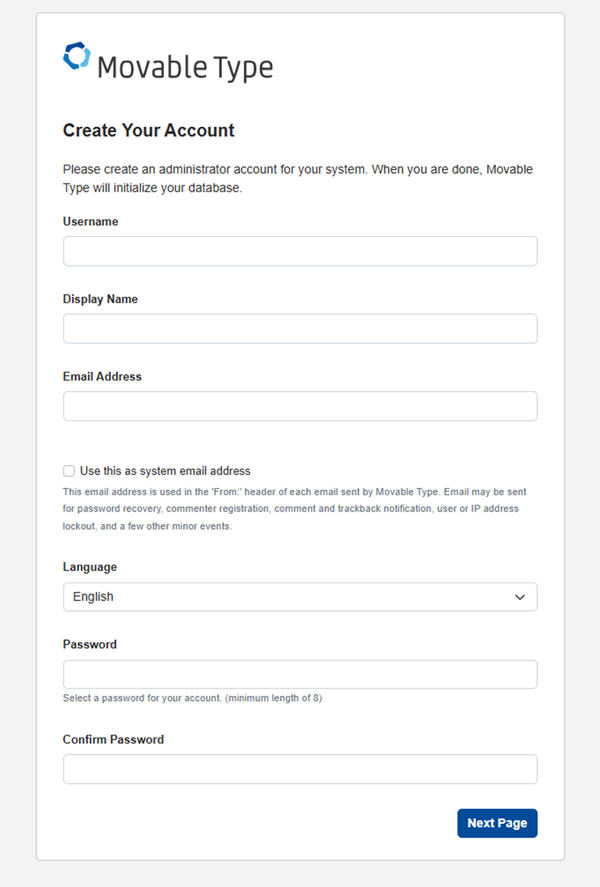 本マニュアルでは、実際の操作画面のスクリーンショットを使用して、Movable Type AMI版の初期セットアップの手順を説明します。
