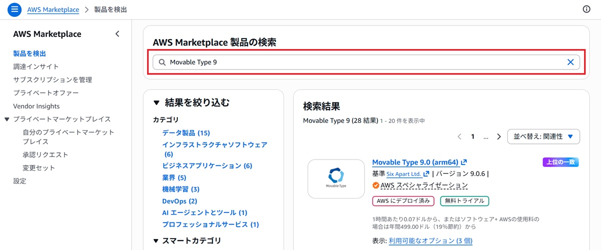 本マニュアルでは、AWS Marketplace コンソールから Movable Type をサブスクライブする方法を説明します。