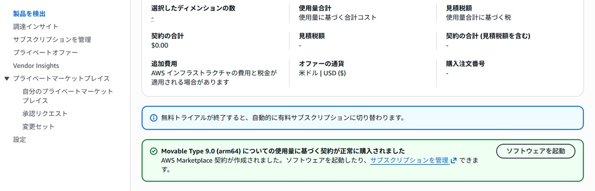 本マニュアルでは、AWS Marketplace コンソールから Movable Type をサブスクライブする方法を説明します。